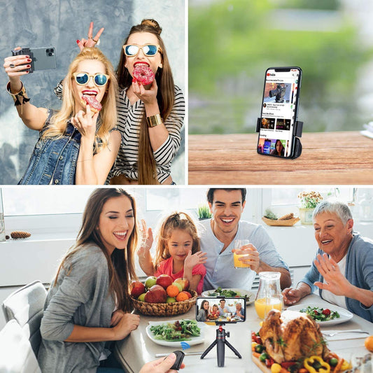 Support de Téléphone Rotatif à 360° : Passez facilement entre la prise de vue horizontale et verticale pour des selfies parfaits, des photos de groupe ou des diffusions en direct. Capturez chaque angle avec précision, que vous créiez du contenu pour TikTok, Instagram ou YouTube.